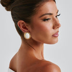 Meninas legais precisam dos brincos Eloise, feitos em metal e resina, com um formato oval. O acessório perfeito para elevar qualquer look, o centro de pedra lisa é complementado por uma moldura dourada texturizada.
