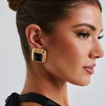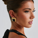 Os brincos Kennedy são o acessório da IT girl que você precisa para sua nova coleção de temporada. Com um centro de pedra lisa e uma moldura texturizada em dourado, esses brincos em forma de quadrado possuem fecho de pressão com base em borboleta.