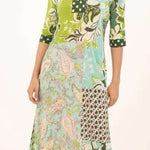 Este vestido combina o clássico decote em V com uma fenda delicada e uma estampa única, criando uma silhueta leve, fluida e cheia de personalidade.