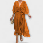 O vestido Amoura abraça suavemente sua figura com chiffon fluido e um profundo decote em V, que destaca sutilmente a silhueta feminina. Este vestido une graça e conforto para qualquer ocasião.