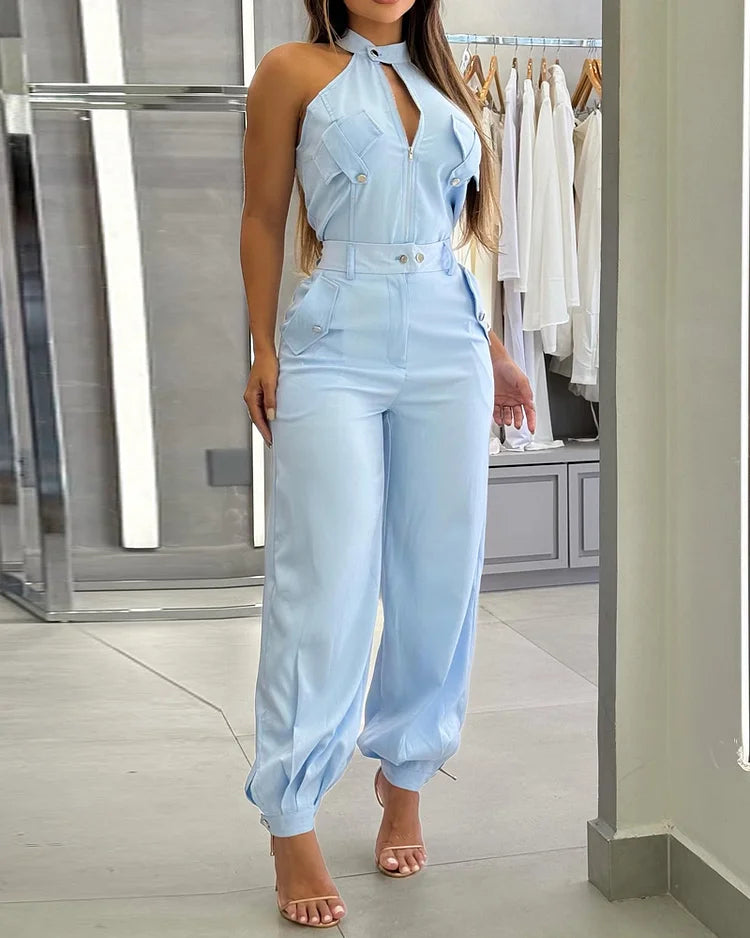 Destaque-se com elegância e modernidade com o nosso Macacão Halter Azul Claro. Perfeito para ocasiões especiais ou um look casual chic, ele combina conforto e sofisticação em um só modelo.