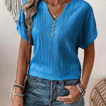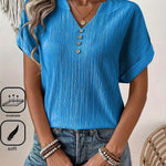 Esta blusa combina estilo e conforto sem esforço, adequada para a mulher moderna. O design leve e o tecido macio proporcionam um caimento agradável, enquanto o fechamento com botões e a linha de pescoço halter garantem um visual refinado.
