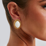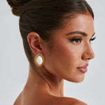 Eleve qualquer look com os brincos Azra, o acessório definitivo para a IT girl. Feitos de metal e resina, esses brincos em forma de elipse têm fecho de pino com apoio em borboleta. O centro de pedra lisa é complementado por uma moldura dourada texturizada.