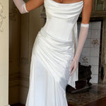 O Cachecol Sybil em Marfim é o acessório definitivo da temporada, projetado para adicionar uma camada extra de elegância a qualquer look. Feito de cetim luxuoso, este cachecol longo se drapeia lindamente ao redor do pescoço.