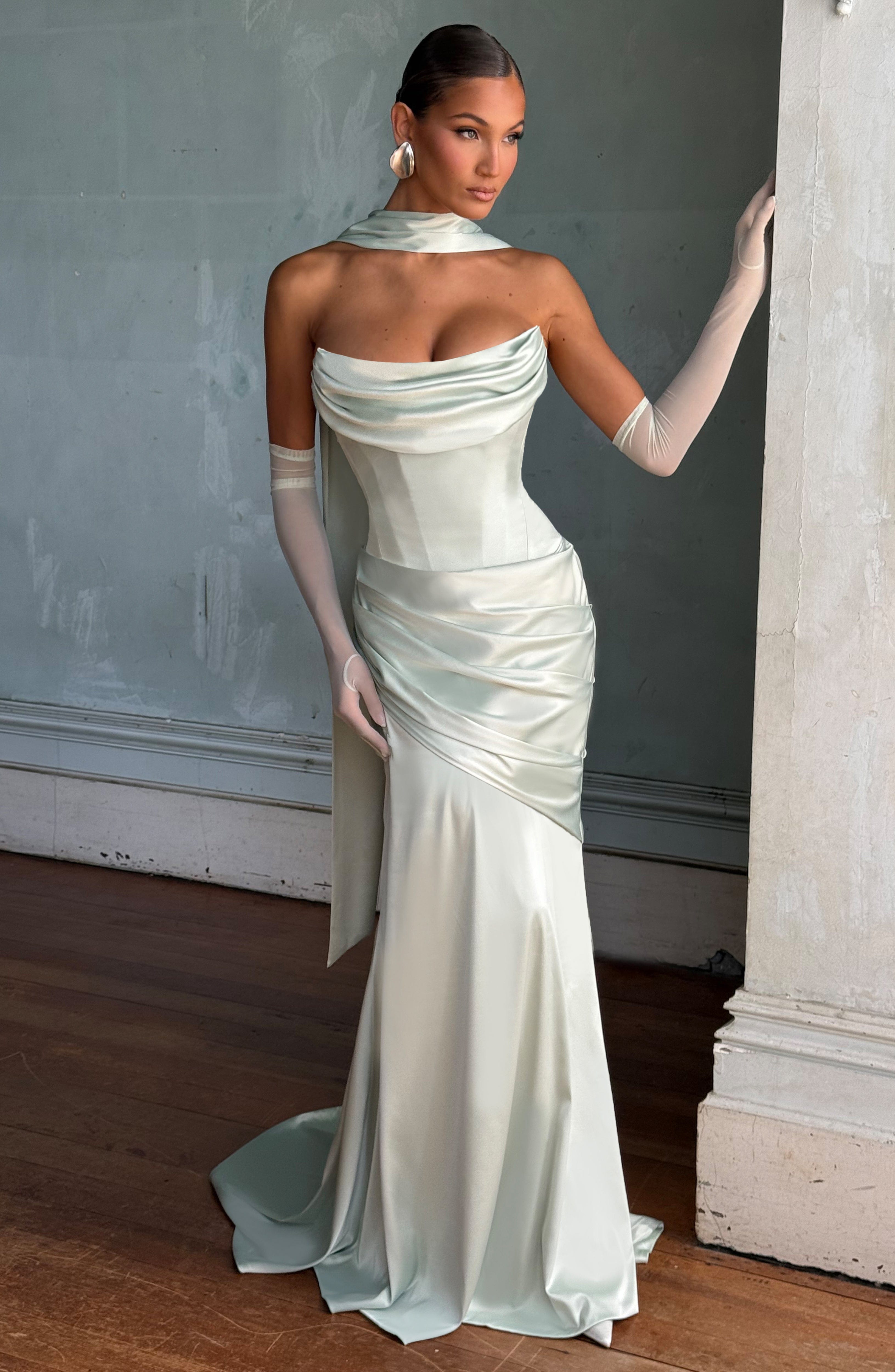 O Cachecol Sybil em Menta é elegantemente despretensioso. Este longo cachecol de cetim se drapeia lindamente sobre o pescoço, adicionando um toque polido e sofisticado a qualquer look. Combine-o com o Vestido Maxi Kensington e Luvas Eli em Menta para um conjunto perfeitamente coordenado e de tirar o fôlego. Atemporal, versátil e indiscutivelmente chique.