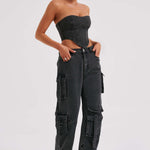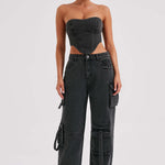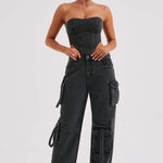 Estamos apaixonados por calças cargo de denim! Apresentando a peça IT da nova temporada, a calça cargo Brooklyn, inspirada na estética descolada dos anos 2000. Com um corte oversized, estilo de perna larga e detalhes de bolso, elas são feitas em nosso novo tecido de denim premium. Mantenha o revival dos anos 2000 real e dobre seu denim com o corpete Yasie.