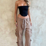 Amando as calças cargo! Apresentamos a peça IT da nova temporada, as calças cargo Tinashe, inspiradas na estética descolada dos anos 2000. Com um corte oversized, estilo de perna larga e detalhes em bolsos, são feitas em nosso novo tecido premium que é tão bom quanto parece. Mantenha o revival dos anos 2000 real e combine com o corpete Mika.