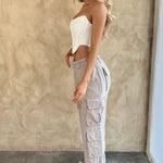 Amando as calças cargo! Apresentando a peça IT da nova temporada, as calças cargo Tinashe cinza claro, inspiradas na estética legal dos anos 00. Com um corte oversized, estilo de perna larga e detalhes de bolso, são feitas em nosso novo tecido premium que é tão confortável quanto bonito. Mantenha o revival dos anos 2000 real e combine as suas com o corpete Mika.