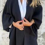 Design envolvente e sofisticado – corte tipo manta com acabamento fluido que se adapta facilmente a diferentes estilos e silhuetas.