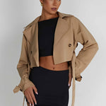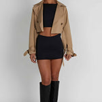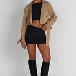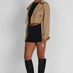 Apresentamos nossa luxuosa roupa externa para complementar todos os looks. Cortado em nosso tecido premium e de alta resistência que oferece estrutura e forma, este design de trench possui um cinto que afunila a cintura e tem um comprimento cropped super estiloso. Esta peça clássica de sobreposição funciona muito bem na transição entre as estações. Use a sua jogada sobre o seu conjunto favorito para arrasar nas vibes de garota descolada.