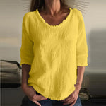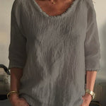 Esta blusa de linho combina estilo e conforto de forma descontraída. O design solto e elegante proporciona um visual relaxado, enquanto o tecido natural oferece uma sensação agradável de frescor. Graças à sua versatilidade, esta blusa pode ser usada como uma camada ou sozinha, combinando com diferentes calças e saias.