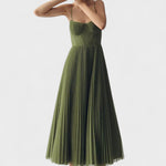 O vestido em tule plissado combina a mais requintada sofisticação com o apelo feminino. Com o seu corpete tipo espartilho, alças finas e saia de tule plissado, é um sonho absoluto para ocasiões especiais como casamentos, galas ou jantares elegantes.