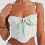 Precisamos de TODOS os corsets fofos no nosso guarda-roupa agora. Clara é divertida e flirtante, feita em nosso algodão premium com um copo com aro para emoldurar o busto. É finalizada com um corpo com estrutura para afinar a cintura e uma barra levemente curvada na frente. Combine com seu jeans favorito e joias minimalistas.