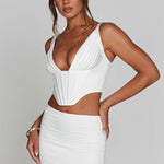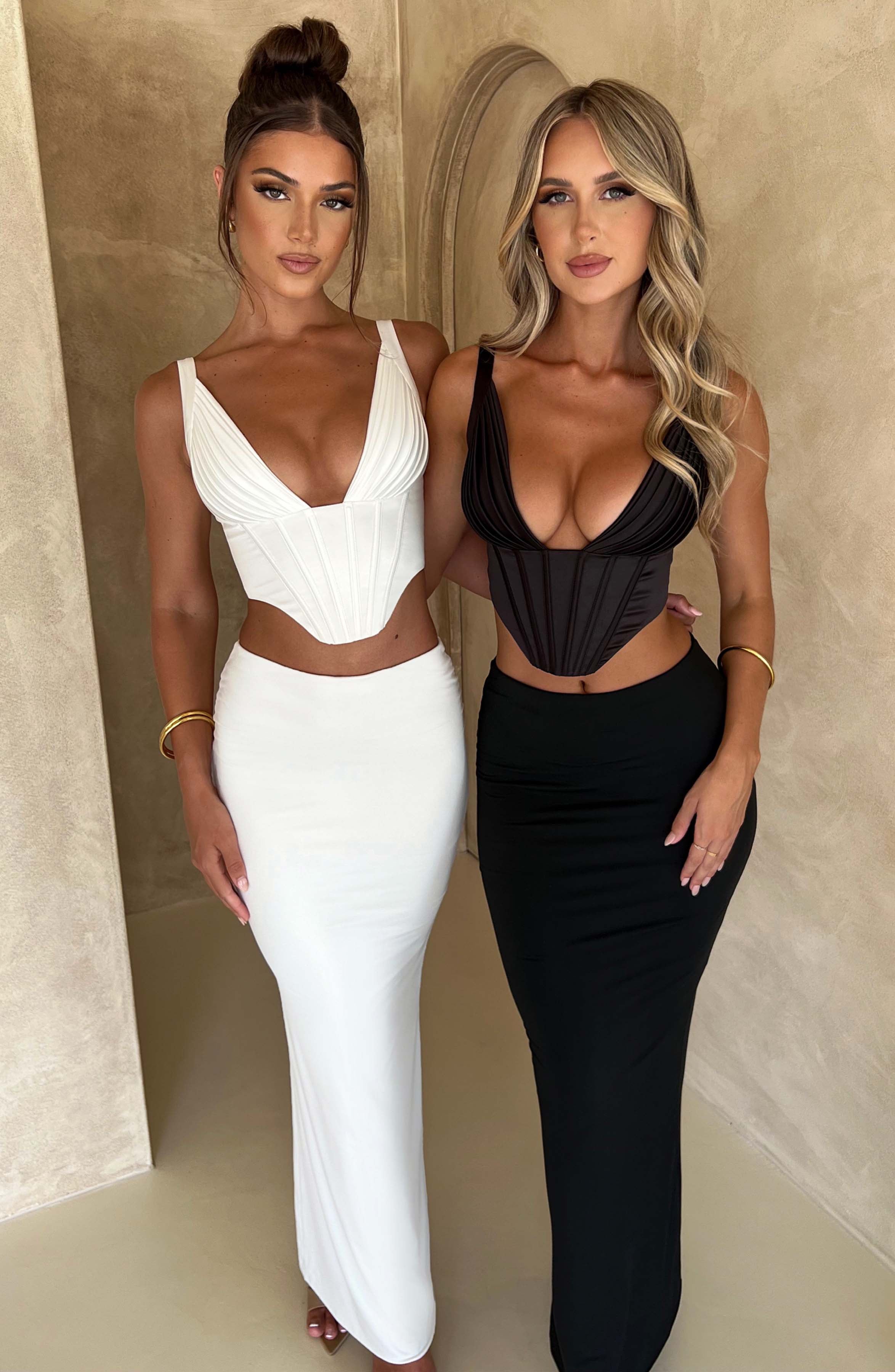 O Corset Kate é um corset estruturado, forrado duplamente, feito de um tecido luxuoso e sedoso disponível nas cores Marfim e Preto. Ele possui um zíper nas costas e um design cropped com alças para um ajuste perfeito.Chame a atenção com o ajuste perfeito, combinado com a saia maxi Astrid.