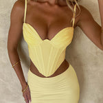Sinta-se radiante no corset Maddie, um estilo deslumbrante que vai modelar sua cintura com detalhes com estrutura, e copas plissadas com aro. Com uma barra frontal arredondada e alças finas, combine-o com o maxi Astrid, joias mínimas e um nó bagunçado.