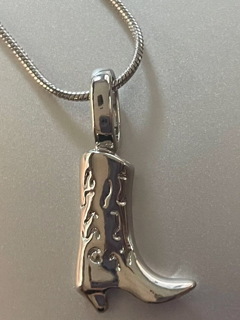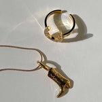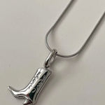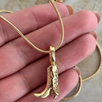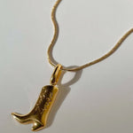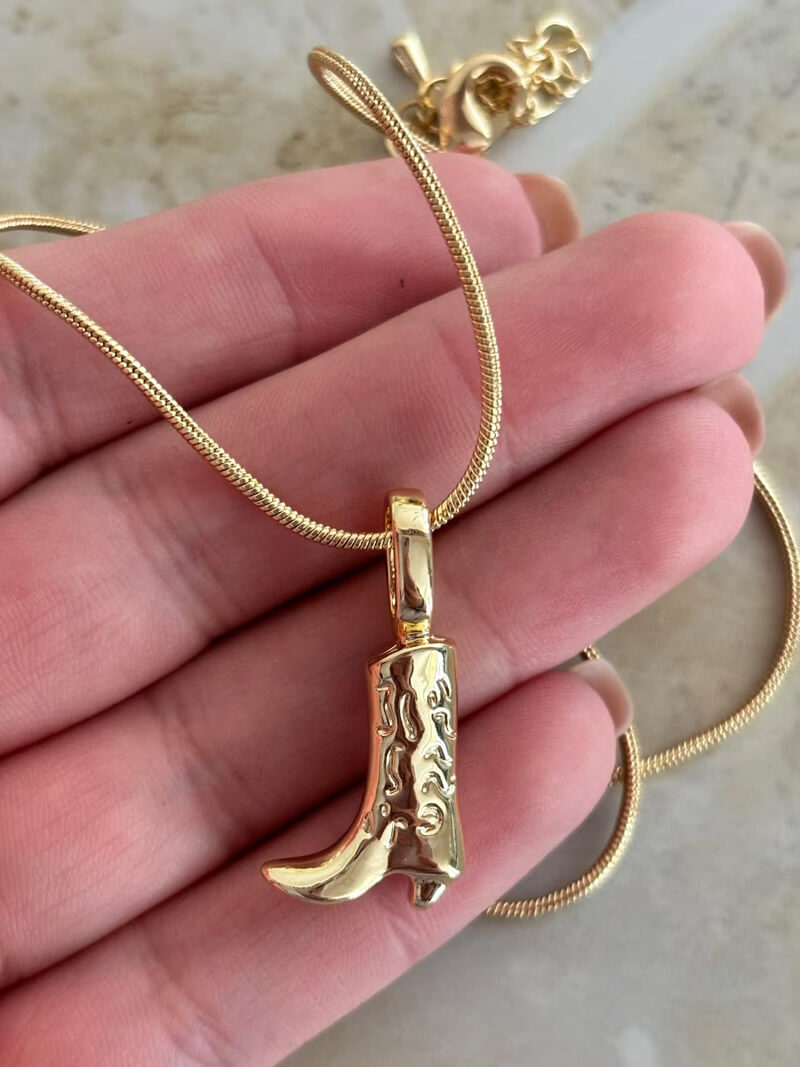 Descubra nosso Colar de Bota de Cowboy, apresentando um pendente detalhado de bota de cowboy. Disponível em aço inoxidável banhado a ouro 14K ou em aço inoxidável premium, esta peça única adiciona uma declaração ousada a qualquer traje.