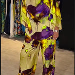 Este deslumbrante conjunto de duas peças foi projetado para fazer uma declaração com sua estampa ousada e artística, além de um toque luxuoso.
