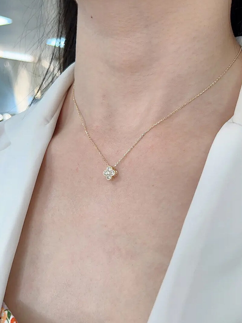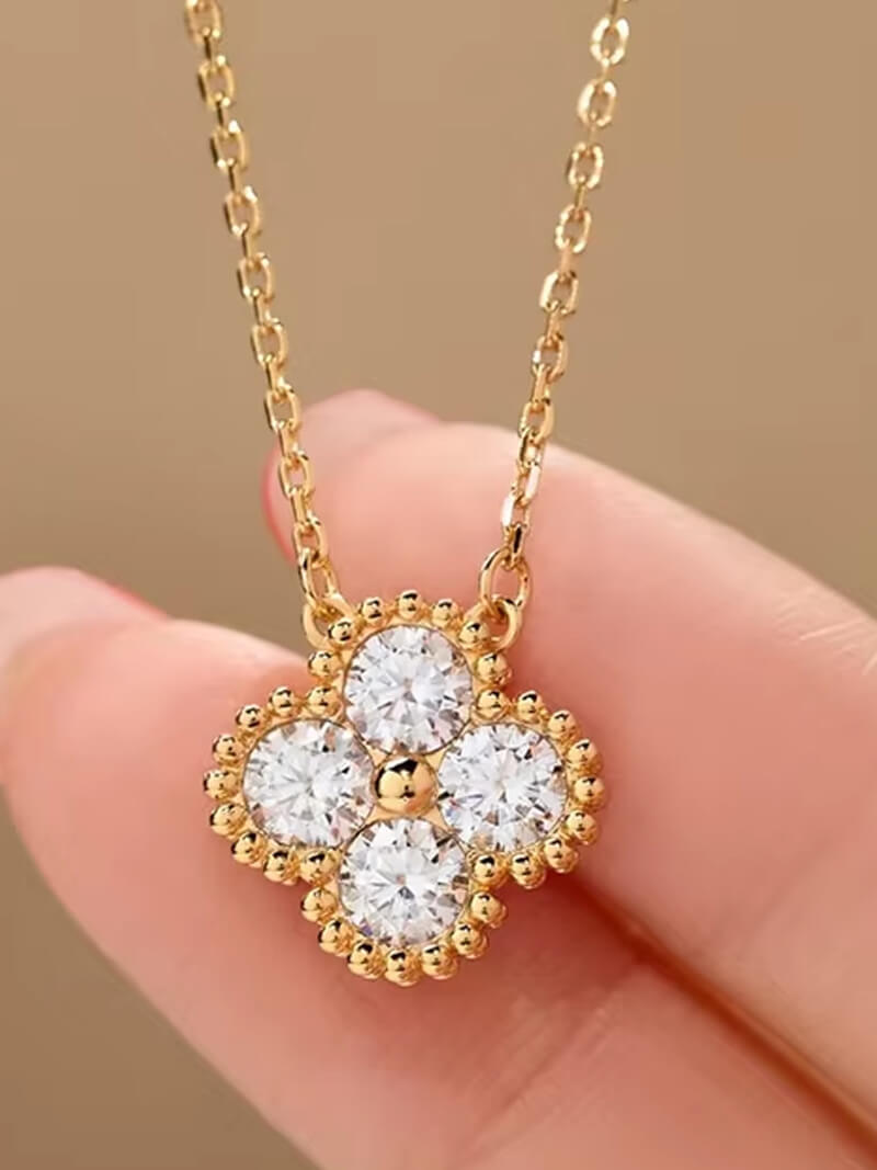 Eleve seu estilo com o Colar Lyne Flower Sparkling, lindamente banhado em ouro 14k. Projetado com uma linha contínua de pedras deslumbrantes, esta peça requintada exala elegância e sofisticação. Ideal para qualquer ocasião, adiciona um charme glamouroso e atemporal ao seu visual.