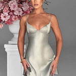 Super bonito para aquelas noites românticas, o vestido mini Azaria é feito de nosso luxuoso cetim stretch com corte enviesado, que se ajusta e abraça a silhueta da maneira mais deslumbrante. Este mini vestido provocante vem com alças finas e um busto com aro.