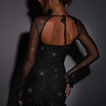 Prepare-se para sair com o Brea, nosso mini vestido principal feito em uma rede de brilho premium e luxuosa com detalhes franzidos por toda parte. As lindas mangas longas são transparentes com punhos flare, enquanto o busto possui aro para dar estrutura e levantar o decote. Use o seu com ondas soltas, uma manicure brilhante e mules de salto alto.
