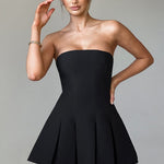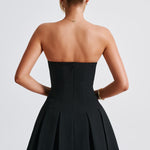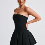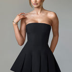 Este mini É o momento. Feito de nosso tecido crepe premium, Bryony tem um decote sem alças e é ajustado no busto e na cintura para um caimento super lisonjeiro. Ele se abre suavemente na saia com detalhes de pregas box. Combine com sapatilhas fofas para um look diurno chique ou mules de salto e joias minimalistas para um visual mais arrumado.