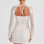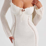 O lindo vestido Dezi em crochê com certeza será o seu novo favorito, feito em nosso suave tricô de crochê com um leve stretch que se molda à sua figura. Com mangas longas e um detalhe de laço no busto, use o seu com mules de salto e ondas suaves.