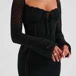 O adorável vestido Dezi de crochê certamente será seu novo mini favorito, feito em nosso suave tecido de crochê com um leve stretch que se molda à sua figura. Com mangas longas e um detalhe de laço no busto, use o seu com mules de salto e ondas elegantes.