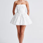 Encante-se com o vestido Evie, um mini flertante com uma saia super volumosa feita de tule para um volume extra. Este estilo sem alças tem um corpete com estrutura para um visual mais ajustado, completo com fita no busto e costas com amarração. Combine com ondas soltas, saltos pontudos e joias metálicas.