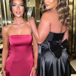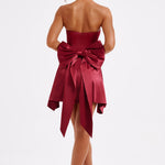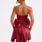 O vestido mini Freja é a perfeição para festas. Confeccionado em luxuoso cetim com elasticidade, este belo design é sem alças, com um corpete estruturado e uma saia rodada e divertida. Um laço dramático nas costas finaliza o visual.