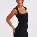 Um vestido lindamente construído que se ajusta como uma segunda pele, Frida é um dos nossos designs mais chiques da temporada. Apresentando uma silhueta simples com decote quadrado e alças largas, complemente com acessórios metálicos estilosos.