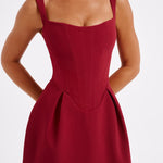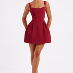 Janiyah é O vestido para a temporada de festas, com a silhueta mais bonita. Este mini é feito de um tecido tecido premium e estruturado, com um corpo corset que ajusta a cintura e desce em um formato de V baixo. O visual é completado com uma saia volumosa icônica.