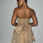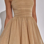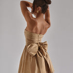 É hora de brilhar com Katrina, o mini vestido mais brilhante para te levar à temporada de festas e além. Adoramos o design do corpete e a saia rodada, com um lindo laço oversized nas costas para completar o look. Combine o seu com uma maquiagem iluminada e mules de salto elegantes.