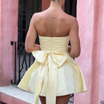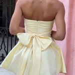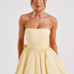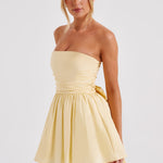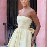 O vestido da temporada chegou e você vai ficar obcecada. Conheça Katrina, nosso mini dos sonhos com uma saia volumosa e um corpete que afina a cintura. Com fechamento em zíper nas costas, um laço oversized completa o look para um drama feminino perfeito.