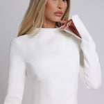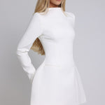 A Kelly está aqui para te vestir para a nova temporada e grandes sonhos. Este mini chique é feito de crepe premium, com mangas longas e um decote alto com pregas. Possui um recorte em forma de chave nas costas e é completo com bolsos embutidos e saia em formato de bolha. Combine com saltos pontudos e uma bolsa mini tonal.
