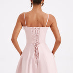 Mais um vestido mini bonito para adicionar à sua coleção, o vestido Lacey é feito em nosso tecido de algodão super leve e luxuoso, com uma saia volumosa e um corpete que afina a cintura. O look é completado com copas com aro e um delicado laço no busto.