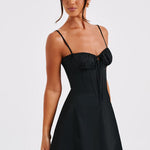 Outro vestido mini bonito para adicionar à sua coleção, o vestido Lacey é feito em nosso tecido de algodão de luxo super leve e macio, com uma saia volumosa e um corpete que afina a cintura. O look é completado com copas franzidas e com aro, um delicado laço no busto e detalhes de amarração nas costas.