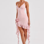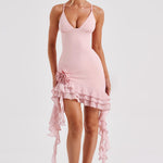 Não fica muito mais chique do que Lillabelle, cortado em nosso tecido de malha dupla premium que se ajusta por dentro e abraça o corpo como uma luva. Com um decote profundo e uma barra assimétrica flertante com camadas de babados em cascata, o mini é completado com detalhes de corsage de flores brincalhonas.