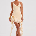 Não há nada mais elegante do que o Lilabelle, confeccionado em nossa malha dupla stretch premium que se ajusta ao corpo como uma luva. Com um decote profundo e uma barra assimétrica flertante com camadas de babados em cascata, o mini é completado com detalhes de corsage de flores brincalhonas.