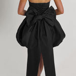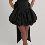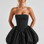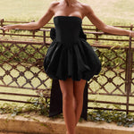 Roube a cena com o nosso vestido mini Lotus. Feito de um tecido tafetá texturizado de alta qualidade, este mini foi projetado para máximo drama. Esta obra-prima sem alças apresenta uma saia volumosa em formato de puff-ball com delicadas pregas na cintura, criando uma silhueta volumosa e chamativa. A costura da cintura em V, o corpete estruturado e as costas com amarração garantem um ajuste escultural e lisonjeiro. O Lotus é complementado com um laço removível com longas pontas, adicionando um toque marcante que pode ser retirado para mudar seu visual.