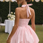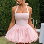 Mostre seu lado brincalhão com o Vestido Mini Maricia na cor Blush! Este vestido totalmente forrado apresenta um decote halter quadrado único e uma saia puffball divertida. As costuras princesa criam uma silhueta lisonjeira, enquanto as costas com amarração em renda adicionam um toque de charme inesperado.