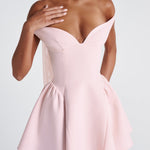 O Vestido Mini Marla na cor Blush é um design feminino e divertido que combina charme clássico com um toque contemporâneo. Feito de crepe não stretch, este vestido apresenta um decote profundo e bardot, além de uma alça traseira elástica para um ajuste seguro e confortável. Painéis de godê franzidos nos quadris criam uma silhueta suave e estruturada, enquanto o tule na saia adiciona um toque extra de volume para um efeito sonhador e cheio.