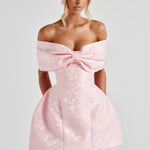 Chame a atenção com o encantador Vestido Mini Raquel, confeccionado em tecido jacquard floral sem elasticidade para uma sensação luxuosa e feminina. O decote oversized com laço bardot exala elegância, enquanto as costas com amarração e a saia tulipa em painéis com quadris plissados criam uma silhueta esculpida e lisonjeira. Perfeito para festas de coquetel, casamentos ou noites de encontro, este deslumbrante vestido mini combina perfeitamente com saltos finos e uma clutch statement para um look sofisticado.