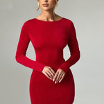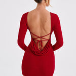 Diga olá para o mini do momento, Una. Confeccionado em nosso tecido de alto brilho que se ajusta ao corpo como uma segunda pele, este design de manga longa é completo com um decote alto e costas com caimento baixo, apresentando detalhes de laço cruzado.