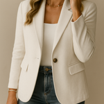 Sofisticação sob medida:  O Blazer destaca-se pela sua silhueta estruturada e pelo fecho de um botão, que realça suavemente a cintura. Foi desenhado para adicionar um toque de elegância tanto a looks casuais quanto profissionais, sendo uma atualização sem esforço para qualquer guarda-roupa.