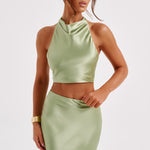As linhas limpas do nosso top Zaylee o tornam um favorito no guarda-roupa. Cortado lindamente na diagonal, destaca o caimento fluido do cetim premium que desliza sobre o corpo.