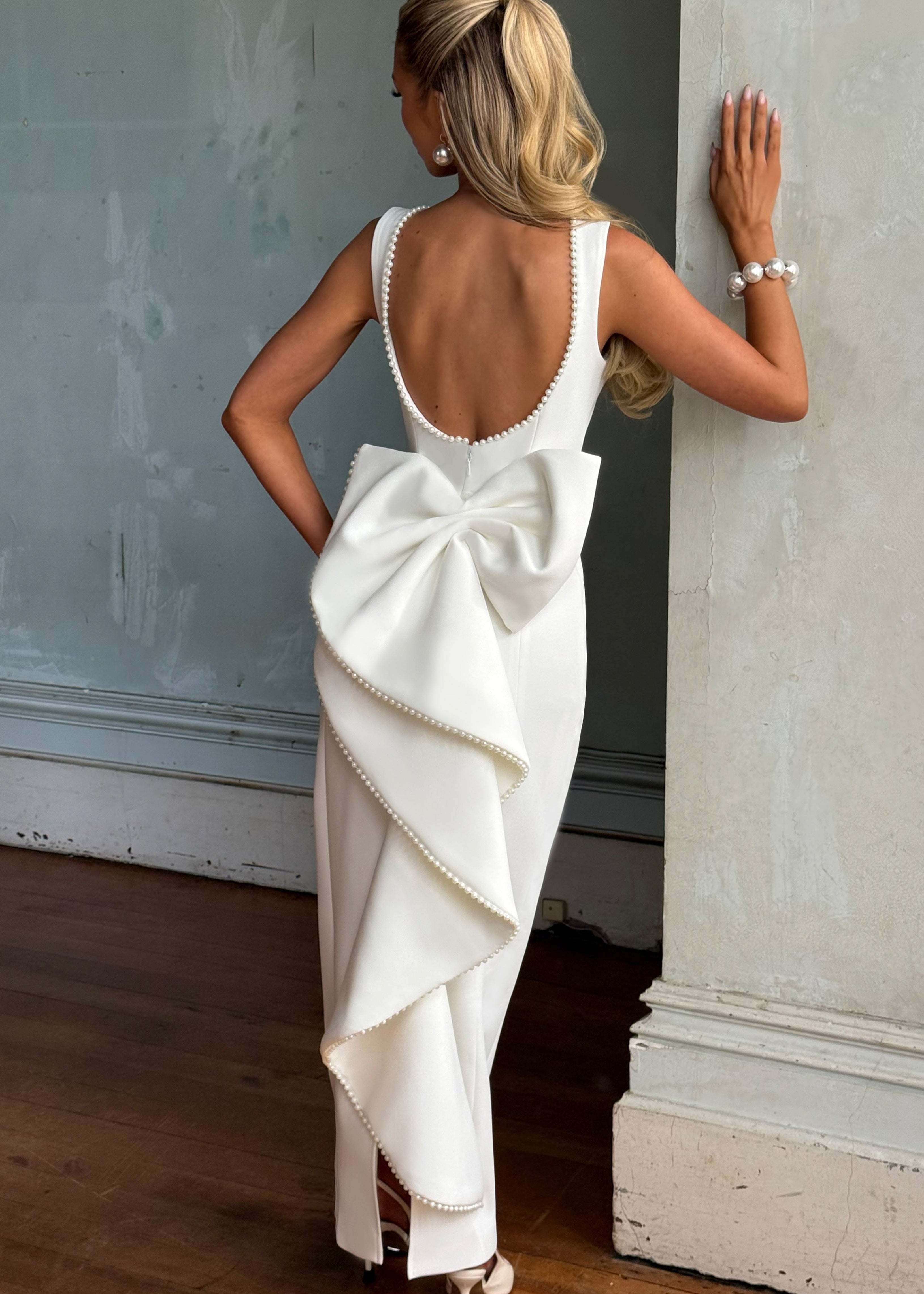 Vestido longo Kiara com ombros descobertos e corte fluido