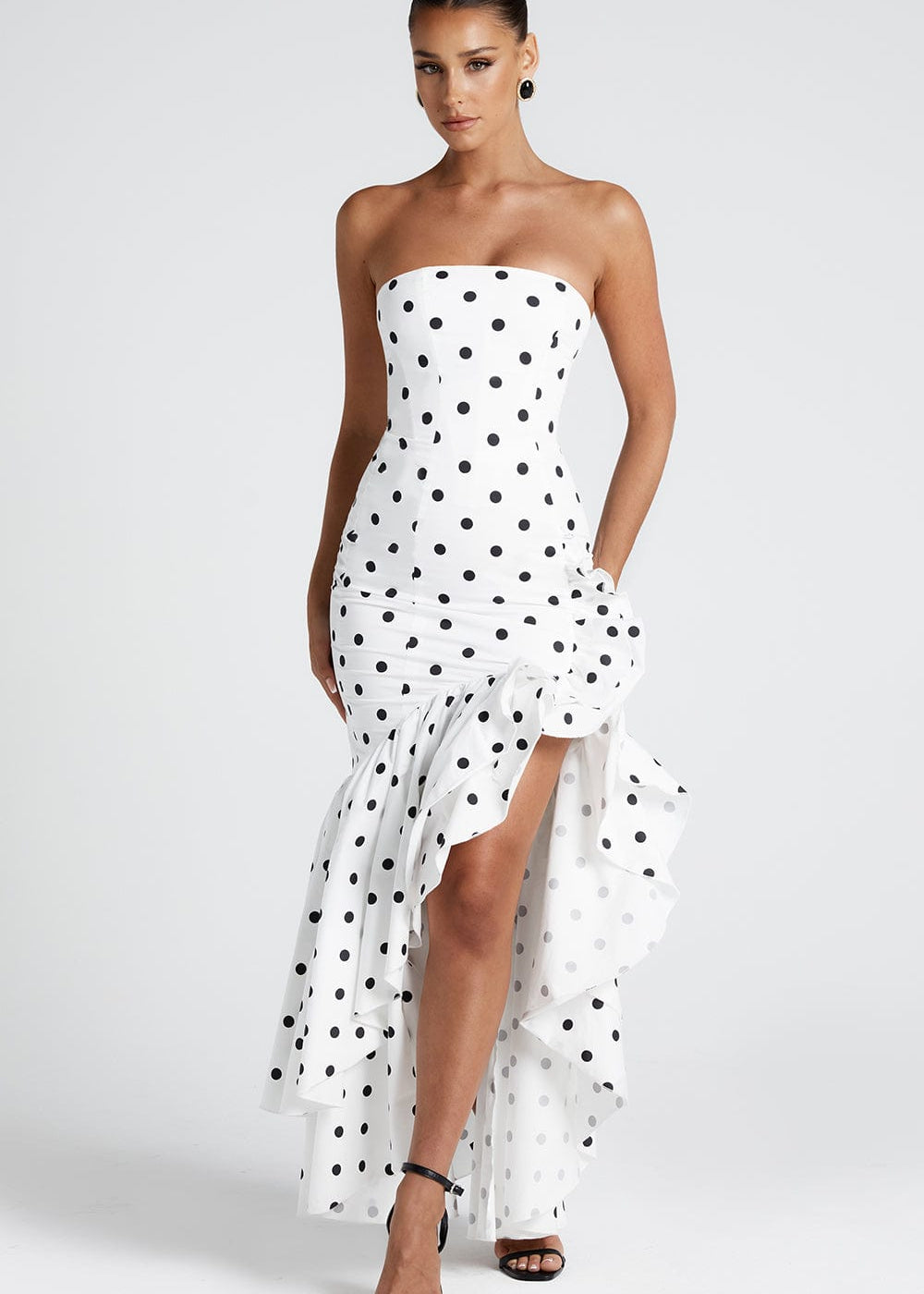Vestido Maxi Angelina - Estampa de Poá Preta