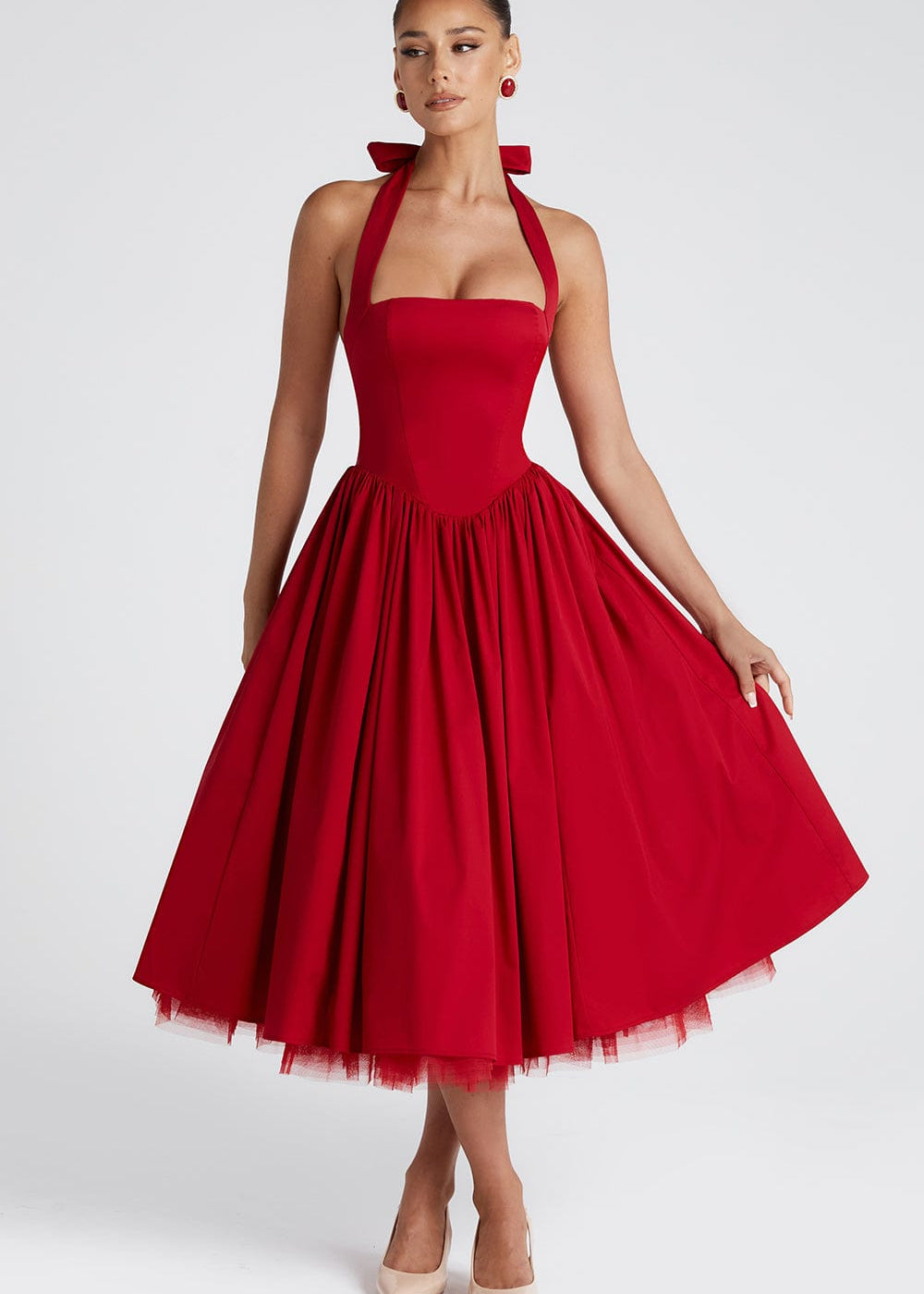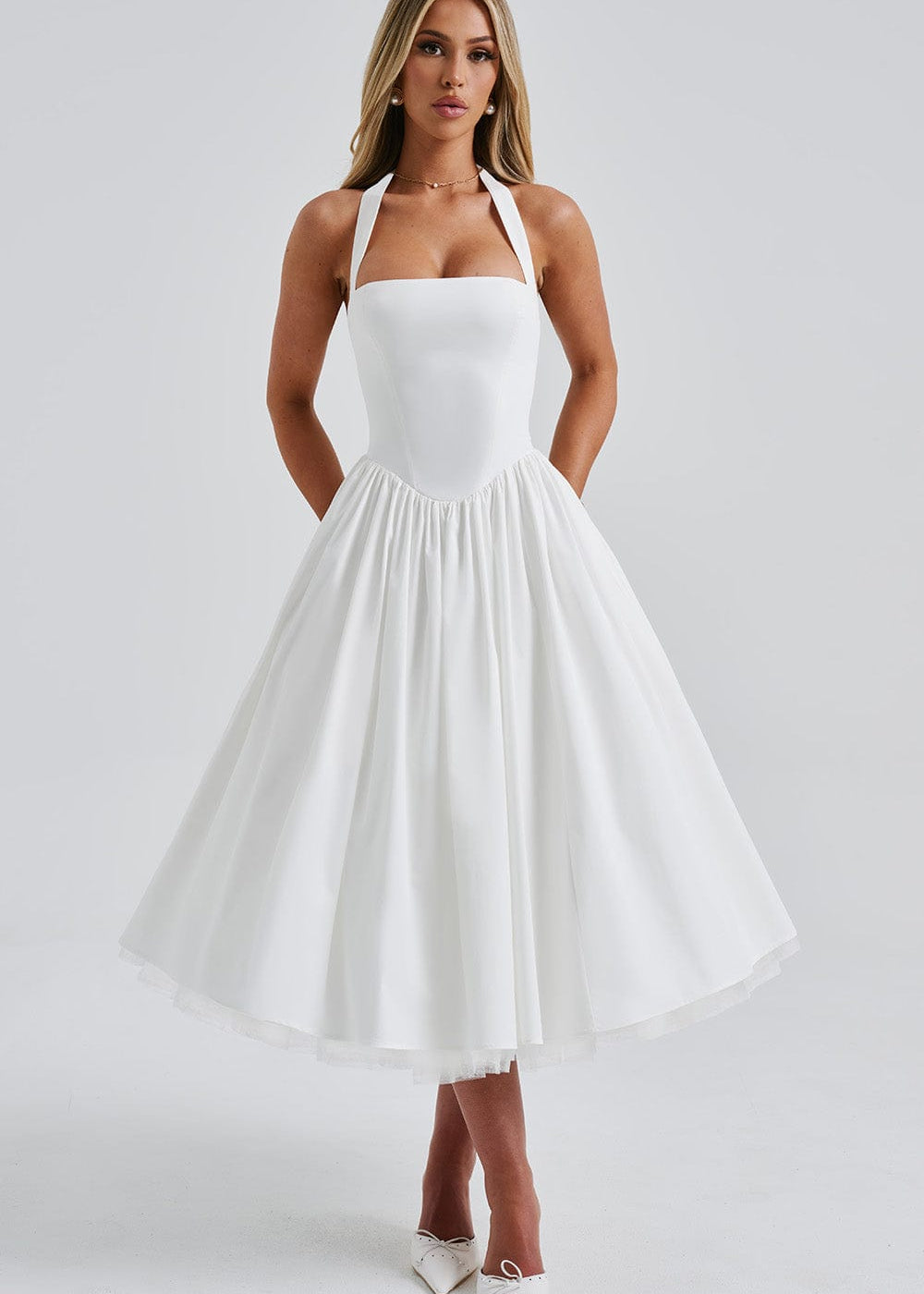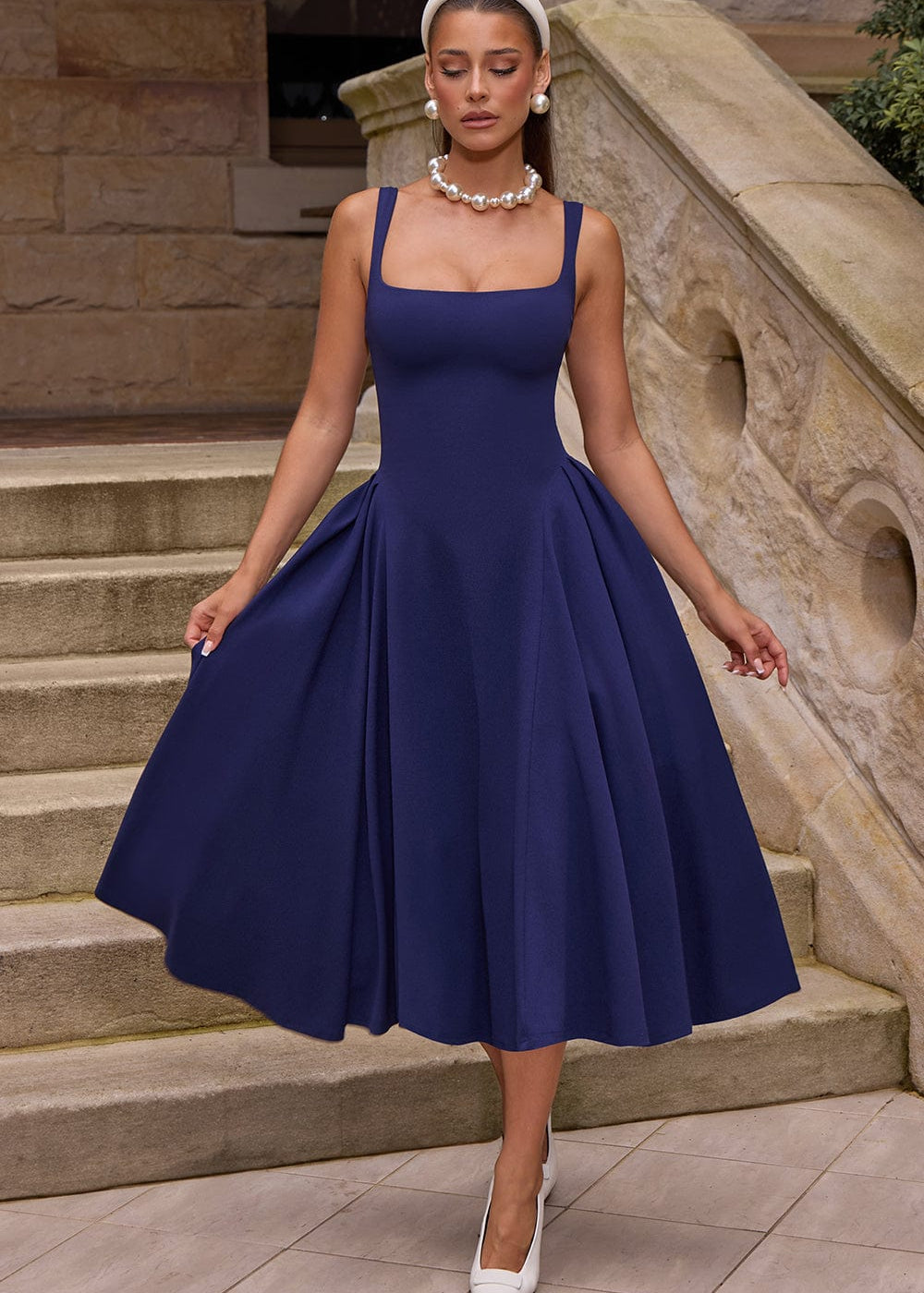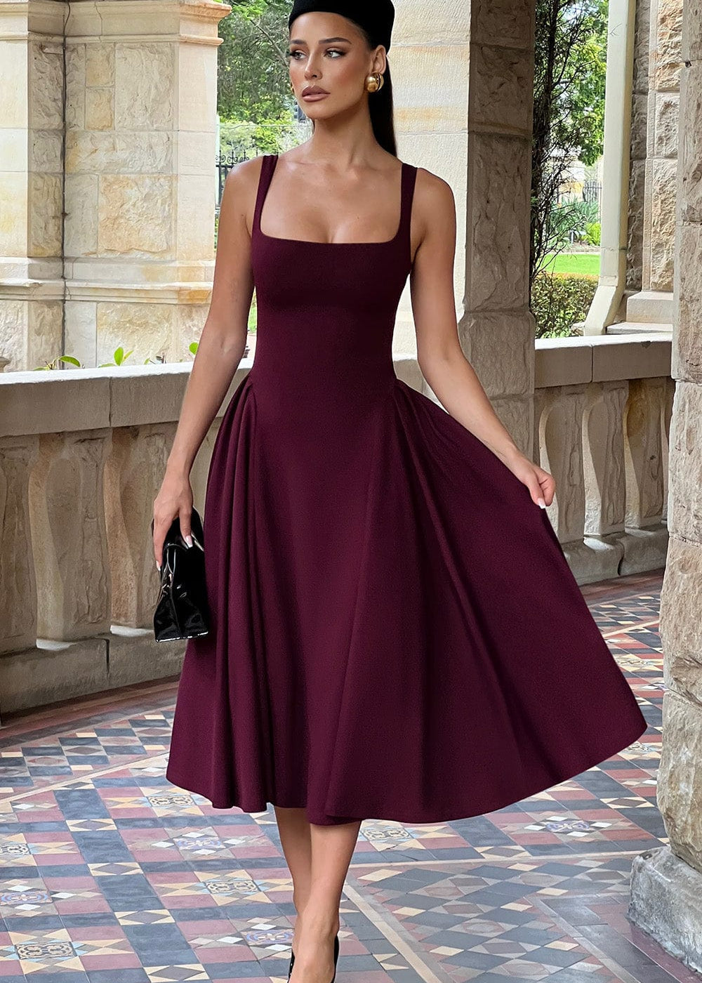 Vestido Midi com Decote Quadrado e Estampa Floral