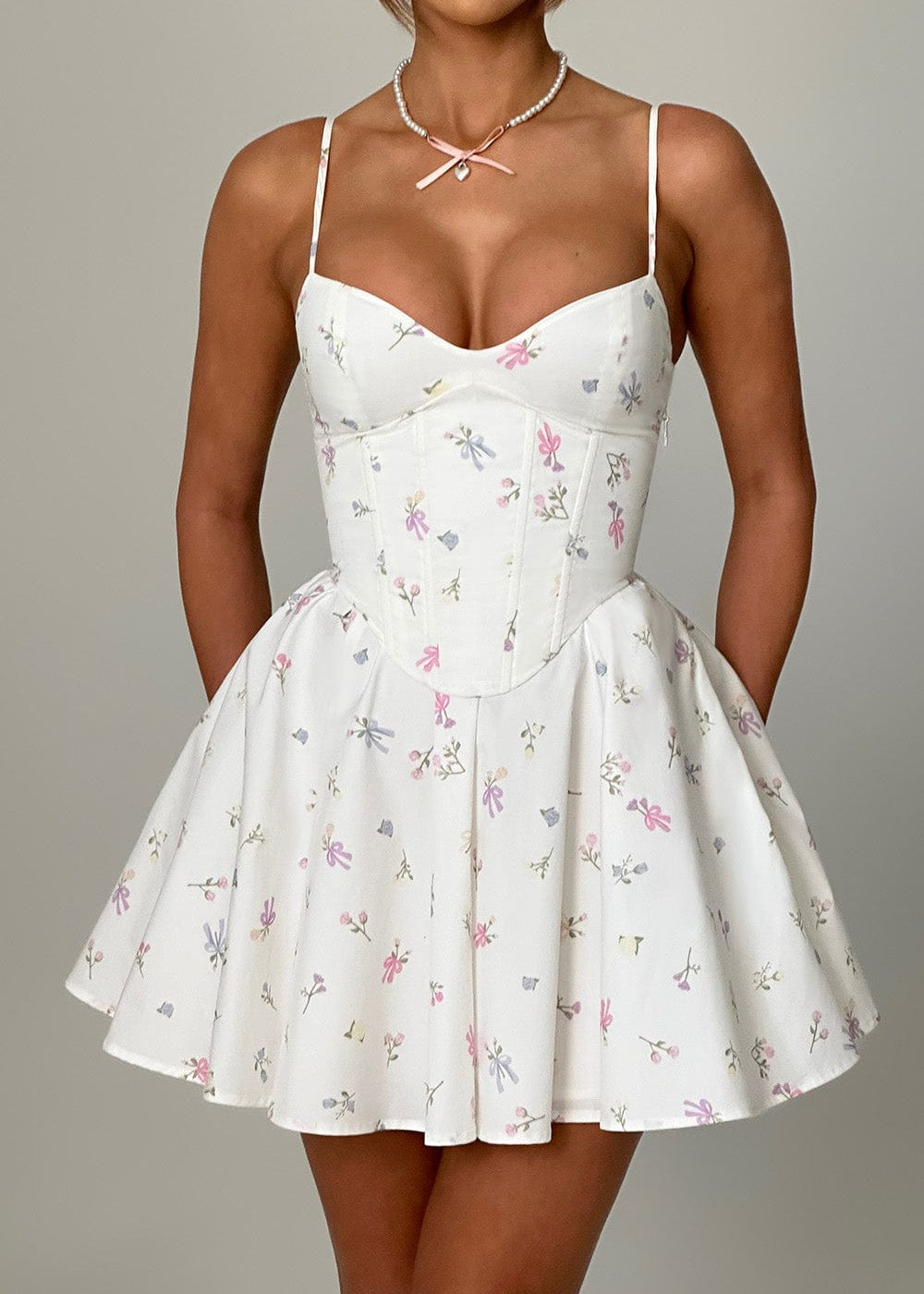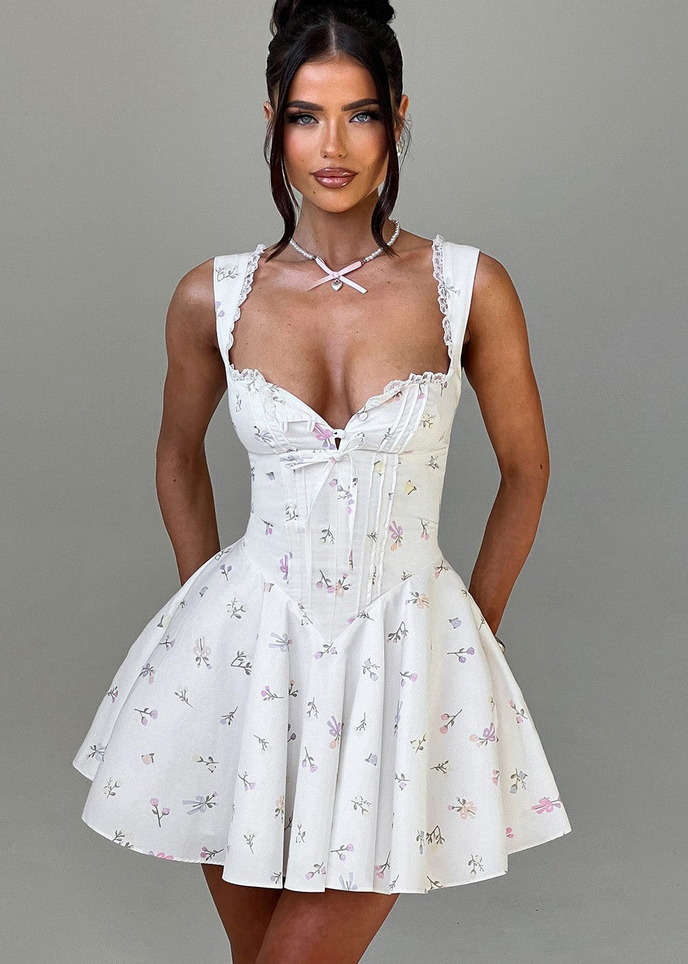 Vestido Mini Analeigh - Estampa Floral Branca Multicolorida