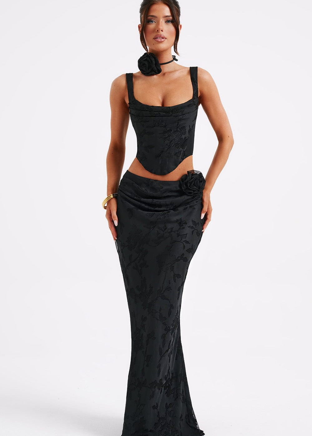 Saia Maxi Flor - Preta